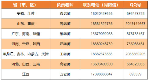 (4)各省(市、區(qū))負(fù)責(zé)老師聯(lián)系方式: