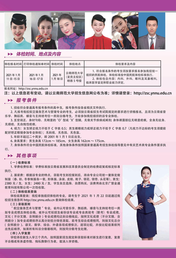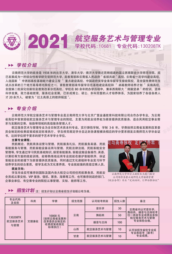 云南師范大學(xué)2021年航空服務(wù)藝術(shù)與管理專業(yè)招生簡章