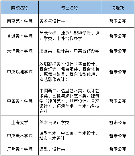 的美術類專業初選合格名單未出: