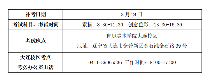 魯迅美術學院2021年校考因沙塵暴天氣導致航班延誤考生補考公告