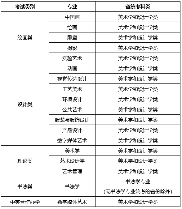 二、本科招生專業(yè)考試各專業(yè)對應考試類別及省統(tǒng)考科類如下: