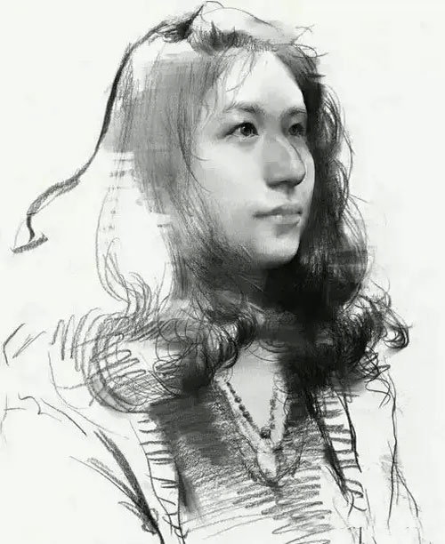 頭部的造型既有較開闊的大面,又有不少細微的轉折起伏,在五官等處相對獨立的構造之間有相當緊密的聯系,形成一個有高低疏密松緊變化的對立統一體。不善于把握整體與局部關系的毛病較多地表現為過于注重局部的刻畫,使各部分顯得孤立不相關聯,或為了“深入”而羅列細節,平均使用筆墨,結果使畫面沒有整體的渾然而顯瑣碎,畫面缺乏大小強弱的呼應轉換變化。或者,有時候也表現為各部分筆墨分量的不均衡,如過分集中于眼、鼻、嘴等部分的精細。描繪而把另一些如頭蓋等邊緣部分處理得過于草率粗糙,因而破壞了畫面一定的整體協調和完整性。這是同觀察方法—卜對大處與小處的綜合認識,以及表現方法之收放分寸的把握的不足有關系的。