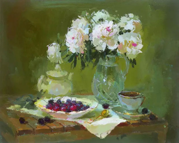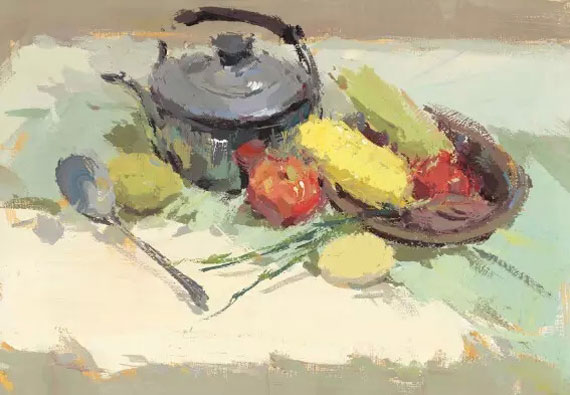 在我們畫畫時,物體的種類眾多,質(zhì)感各異,而物體的質(zhì)感又可以通過用筆、用水、筆觸等多種方式來表現(xiàn),如光滑的物體可以用圓潤的筆觸加以高光表現(xiàn)、粗糙的物體可以用筆觸表現(xiàn)其肌理。無論何種表現(xiàn)形式,都應(yīng)該要服從整體,對于畫面里的中心物體要重點刻畫,讓畫面看起來有看頭,而這些物體的質(zhì)感表現(xiàn)也要處理的比周圍的物體更細膩到位,如刻畫襯布的褶紋、玻璃器皿的體面轉(zhuǎn)折、反光,毛巾的疏松柔軟等細節(jié)。
