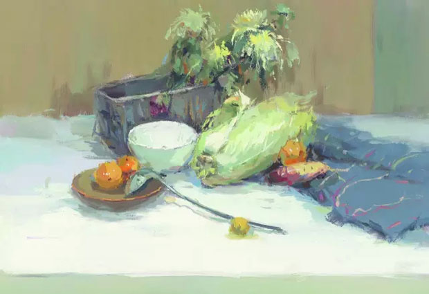色彩較素描來說,更注重整體,所以要學(xué)會整體觀察,沒有整體,細節(jié)即使畫的再好,畫面也會顯得雜亂無章。很多同學(xué)覺得整體不知如何做到,我相信只要多畫,在頭腦中的“整體——局部——整體”的作畫意識逐漸會清晰起來,對于調(diào)配顏色、色彩之間的銜接、干濕等問題上逐一克服,定會做到整體。