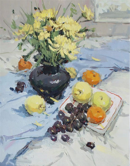紅加黃變橙,紅加藍(lán)變紫,黃加藍(lán)變綠。紅、黃、藍(lán)是三原色,橙、紫、綠則是三間色。間色與間色相調(diào)合就會(huì)變成各類灰色。但灰色都應(yīng)該是有色彩傾向的,譬如:藍(lán)灰,紫灰,黃灰等。