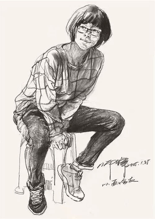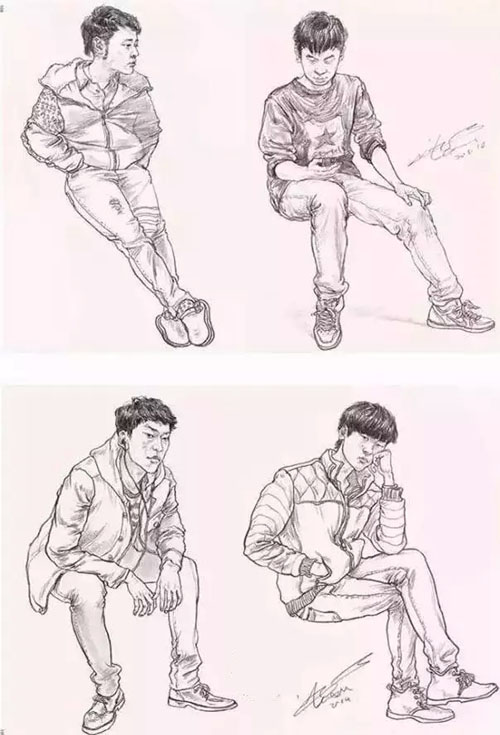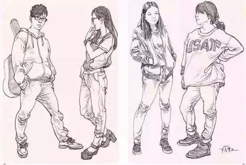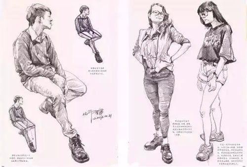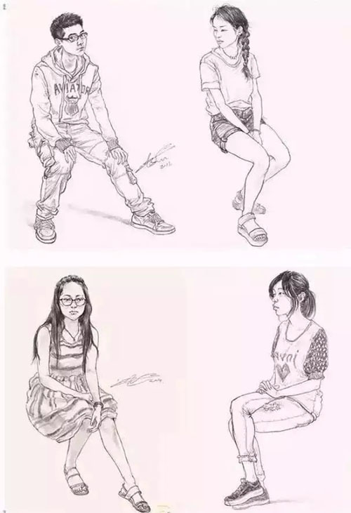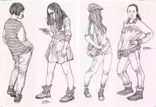 一幅速寫的成敗,手的表現也不可忽視,畫手要注意其外形及透視變化,須把握關節間的角度,手指不可一一死描,應注重其整體形態與手勢。