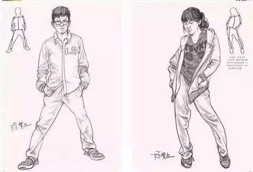 畫手還要注意其手形與手勢,捕捉手的特殊“表情”。要從衣服緊貼身體的部分著手刻畫,因為緊貼部位形體明顯,是骨骼與肌肉結構的突起點和關節轉折點,也是人物運動姿態的關鍵點,注意在要點處用筆要肯定。