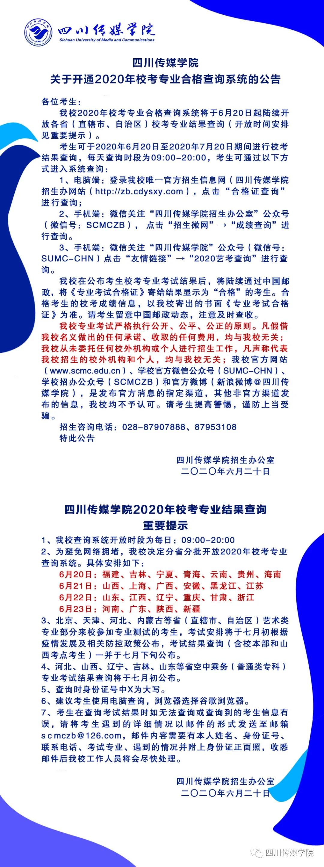 四川傳媒學院發布了2020年藝術類專業校考成績,有報考該校的同學,可以查成績啦!具體如下: