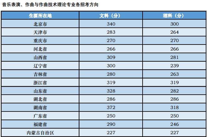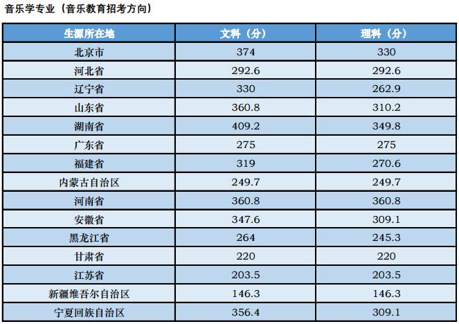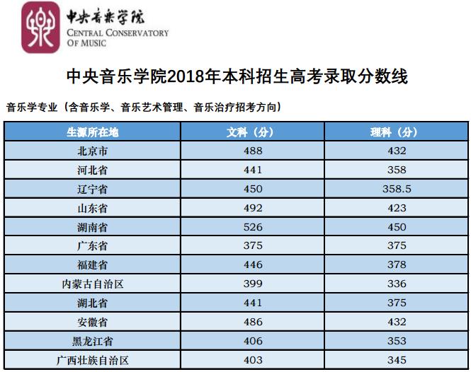 中央音樂學院2018年本科招生高考錄取分數線