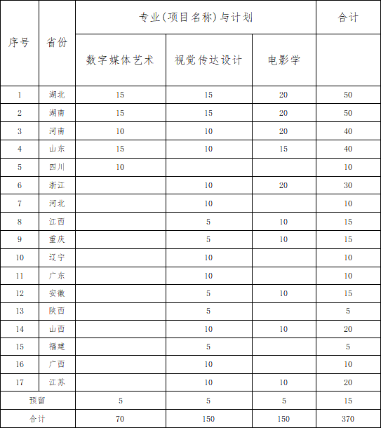根據(jù)教育部關(guān)于普通高等學(xué)校藝術(shù)類專業(yè)招生的有關(guān)規(guī)定和教育部關(guān)于中外合作辦學(xué)項(xiàng)目的相關(guān)要求,結(jié)合學(xué)校的培養(yǎng)能力和辦學(xué)實(shí)際,學(xué)校決定2018年繼續(xù)招收藝術(shù)類專業(yè)以及中韓合作藝術(shù)設(shè)計(jì)專業(yè)本科教育項(xiàng)目的考生共370名。