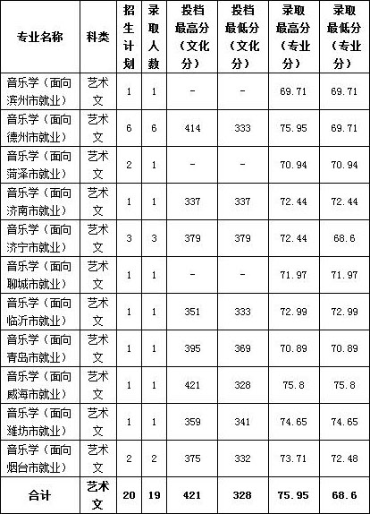 魯東大學(xué)2018年山東省藝術(shù)類本科公費(fèi)師范生錄取統(tǒng)計(jì)