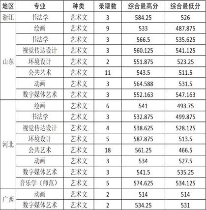其余省份:對參加我校專業?嫉目忌,文化、專業校考成績均上線,采用專業志愿優先、按綜合分從高到低的原則擇優錄取。