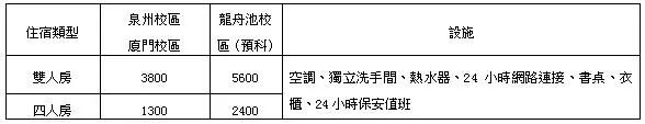 (二) 住宿費(幣種:人民幣,單位:元/人/學年)