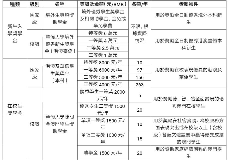 4.表格列出我校澳門學生報讀較多的部分專業,最終招生專業目錄以華僑大學招生資訊網公佈為準。