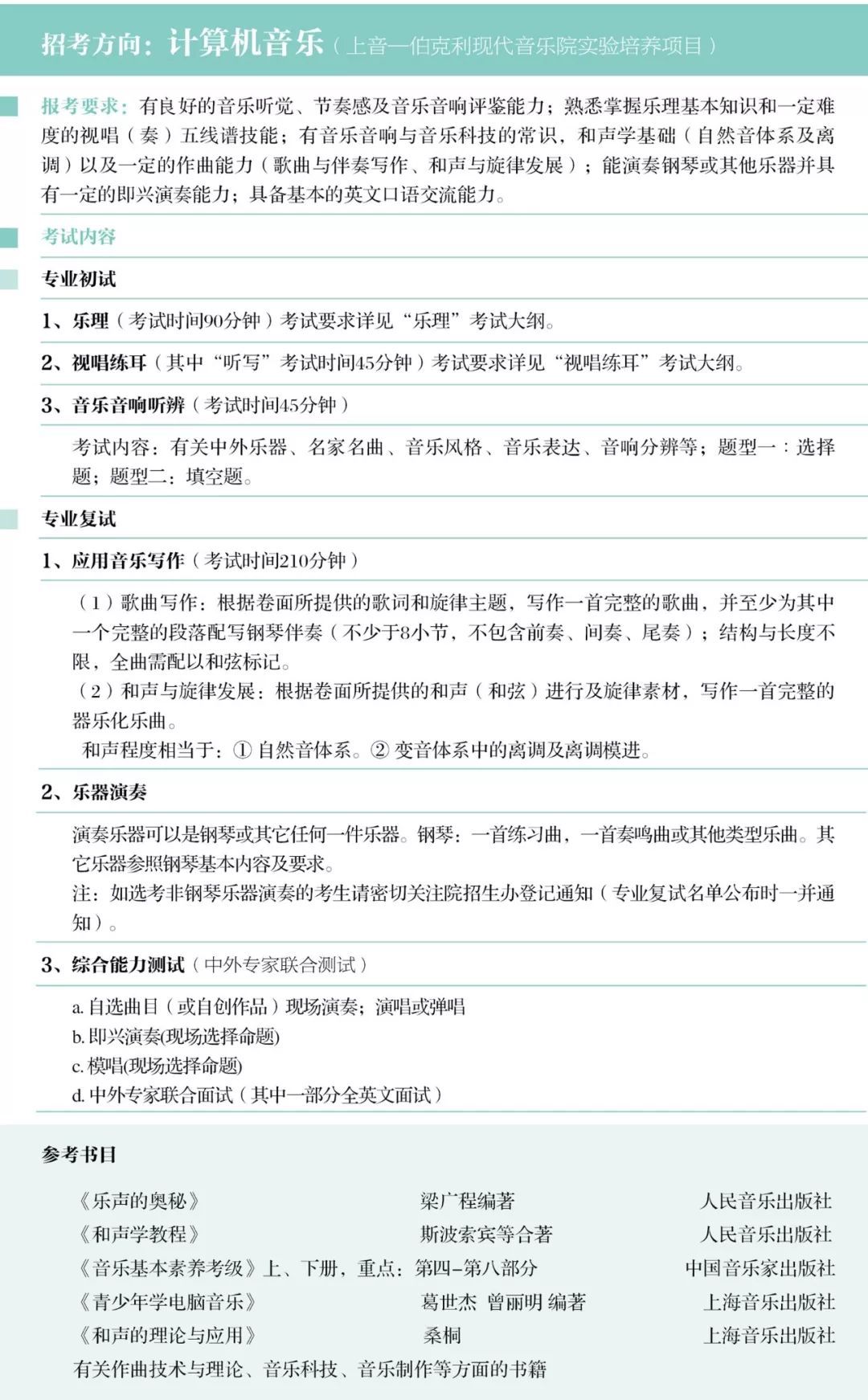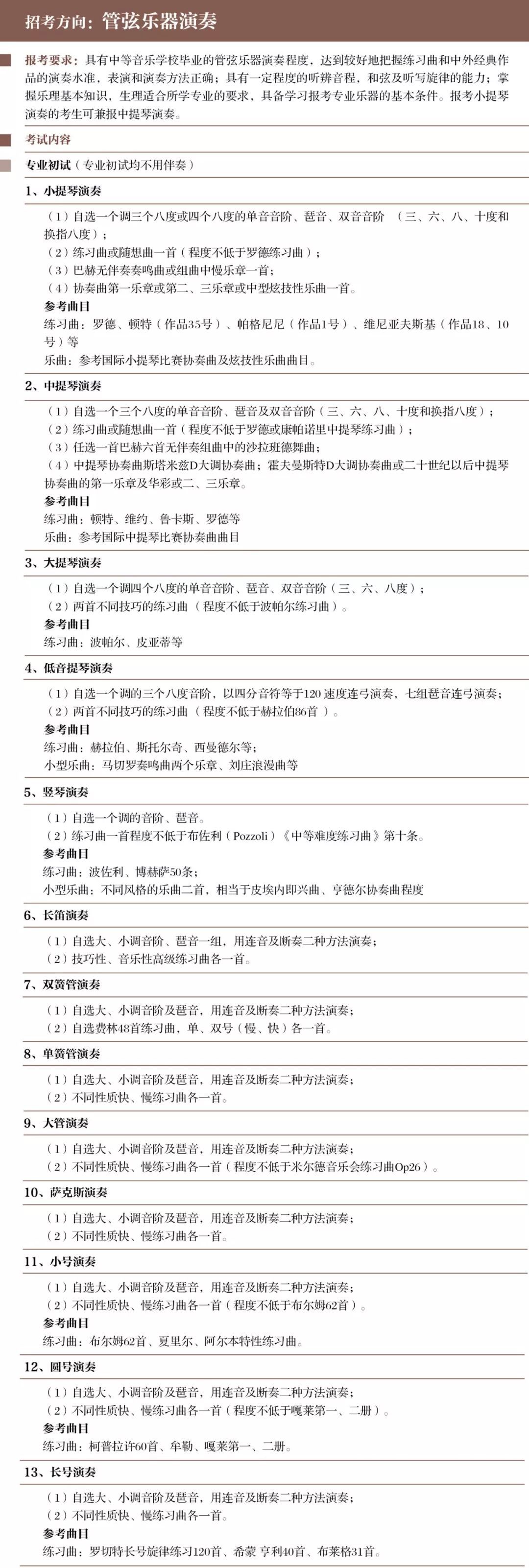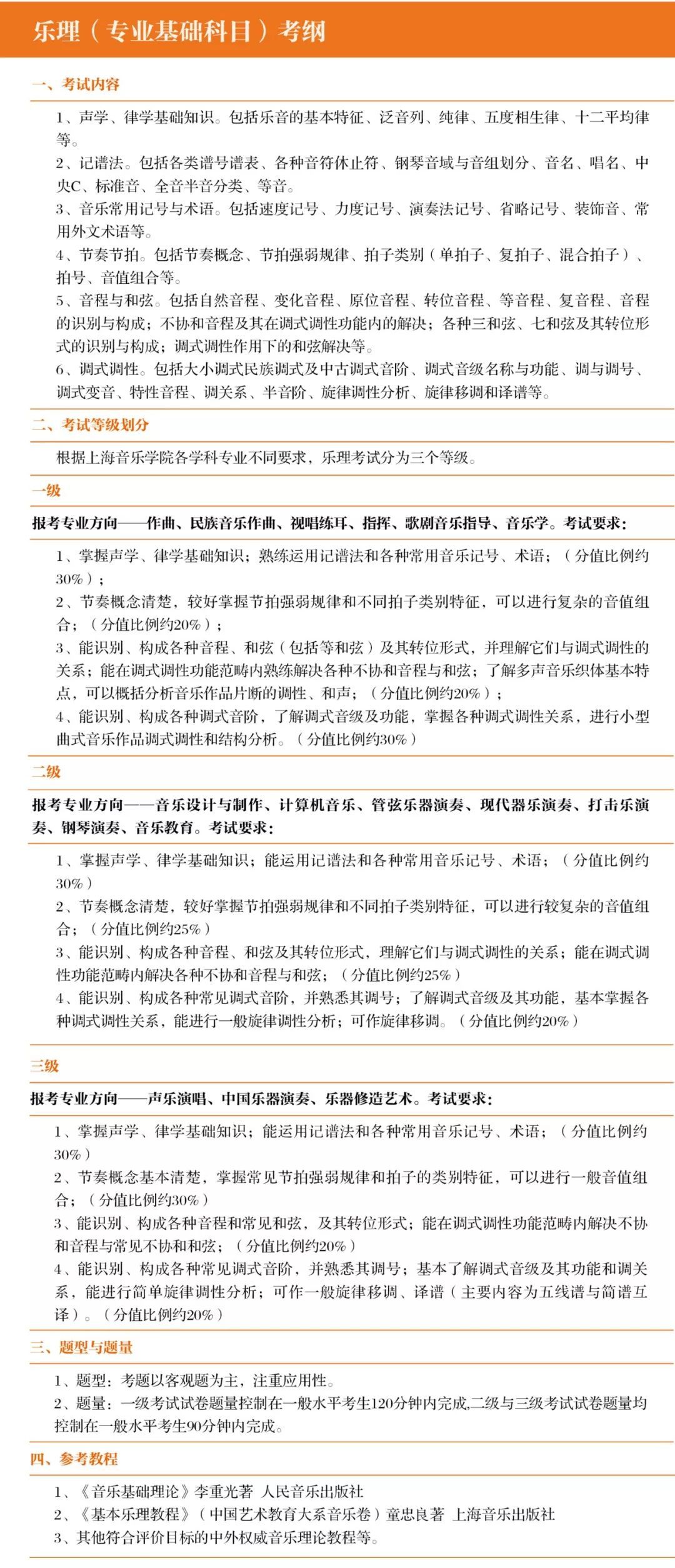 上海音樂學院2019年本科藝術類招生目錄及考試大綱