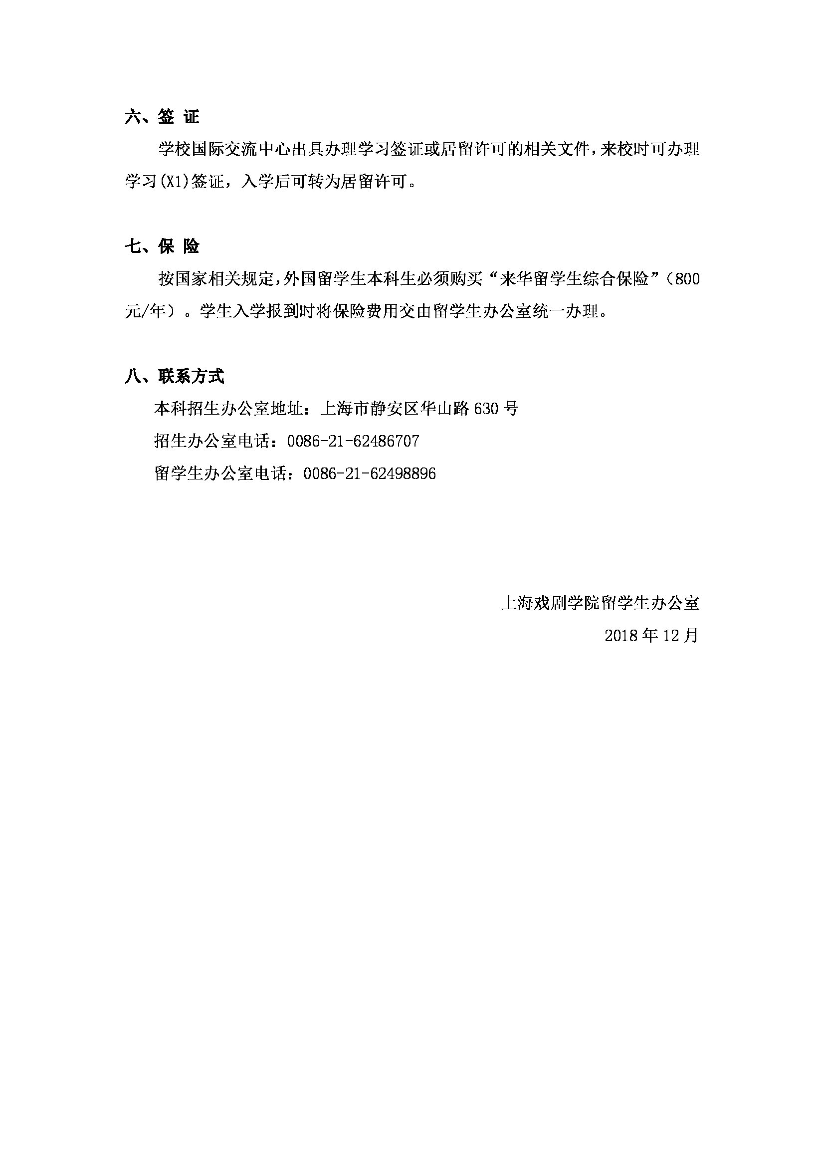 上海戲劇學院2019年外國留學生本科招生簡章