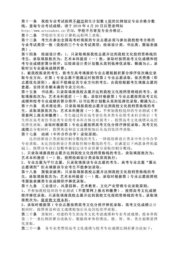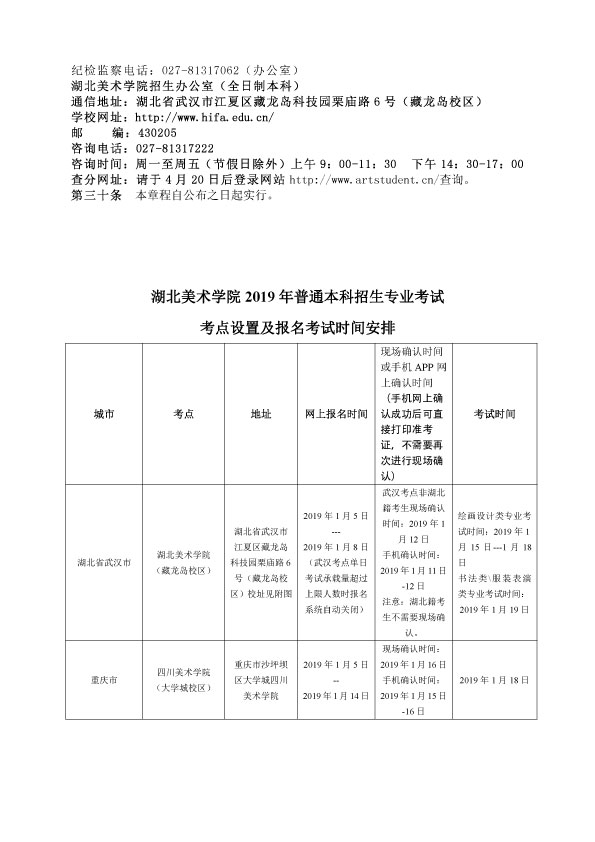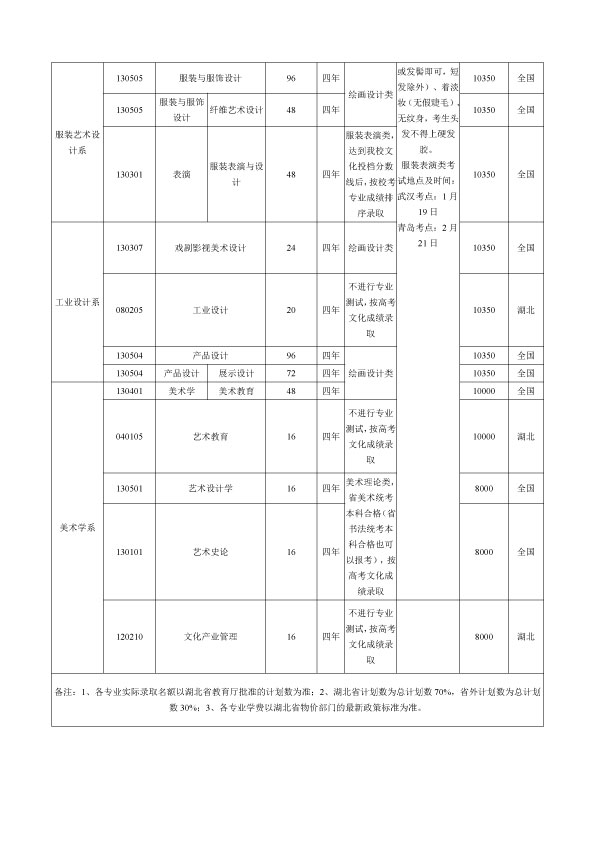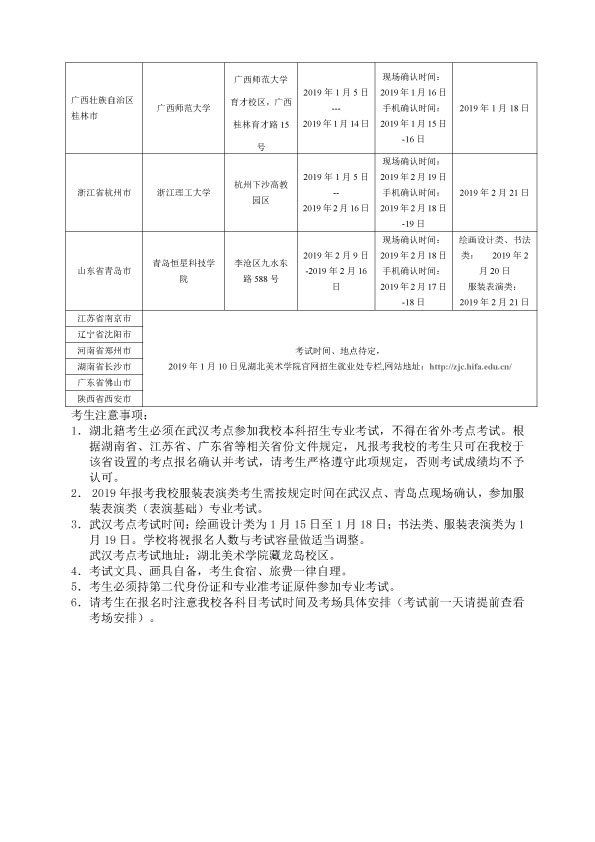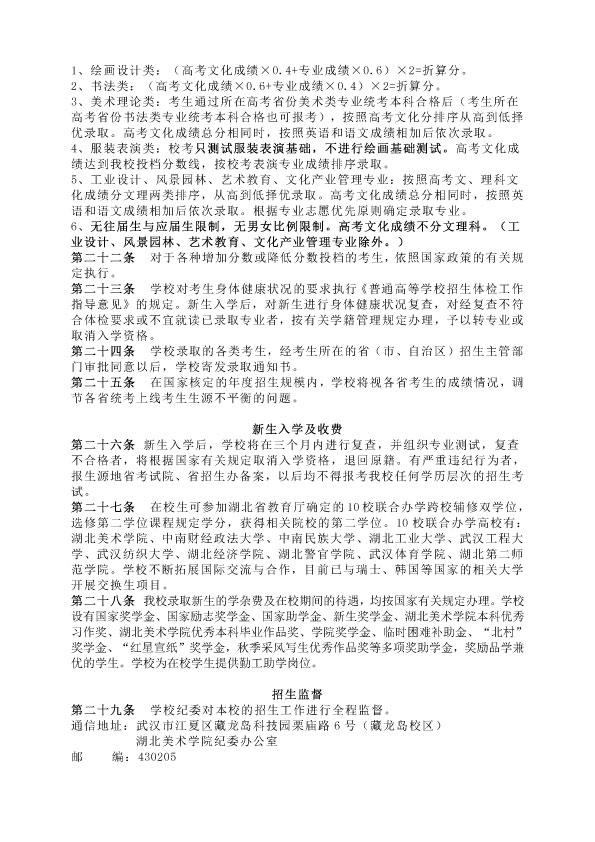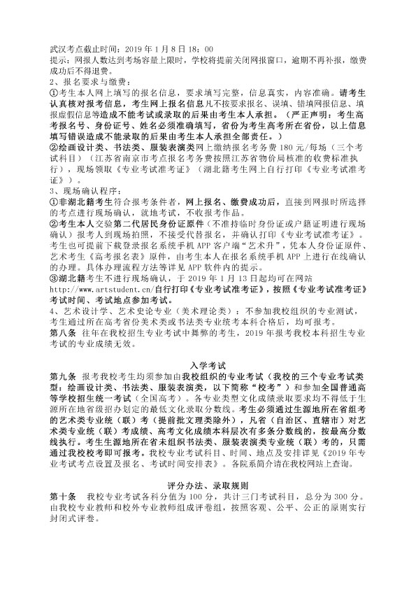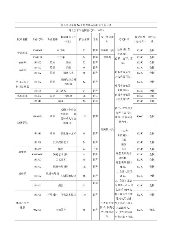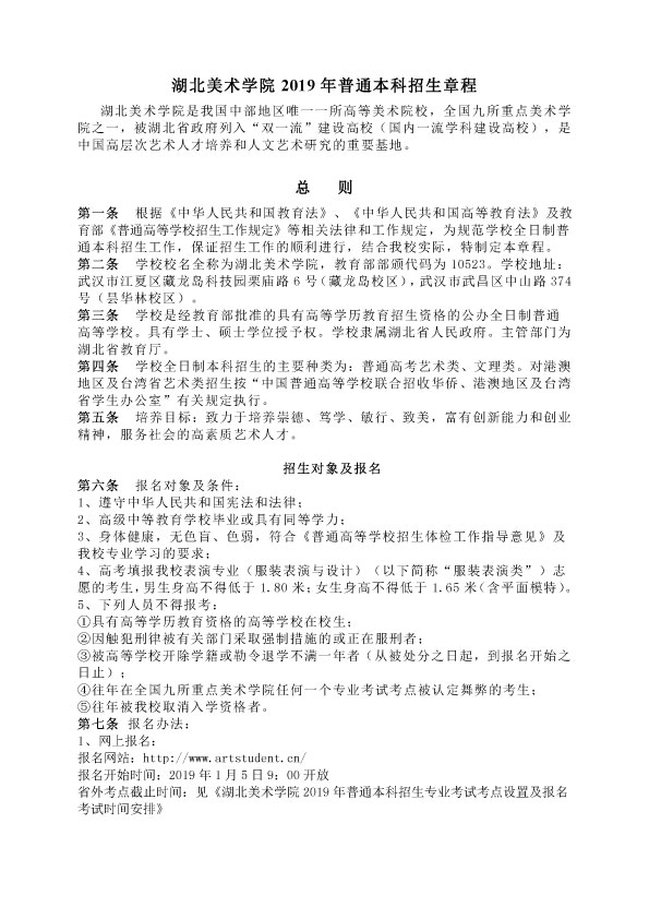 湖北美術(shù)學(xué)院2019年普通本科招生章程