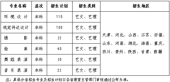 ●美術類(環境設計、視覺傳達設計、攝影、繪畫)專業:符合投檔條件,按照專業課成績從高分到低分錄取,專業課成績相同時按文化課成績從高分到低分依次錄取。