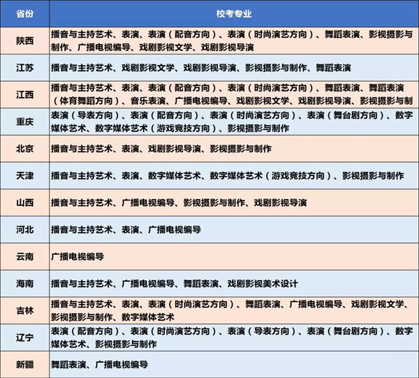 ①表演、表演(配音方向)、表演(導(dǎo)表方向) 、表演(時尚演藝方向)、表演(舞臺劇方向)、音樂表演、舞蹈表演(本科)、舞蹈表演(體育舞蹈方向)專業(yè):
