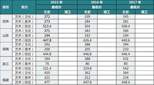 吉林農業大學2015-2017年美術類本科專業錄取分數線