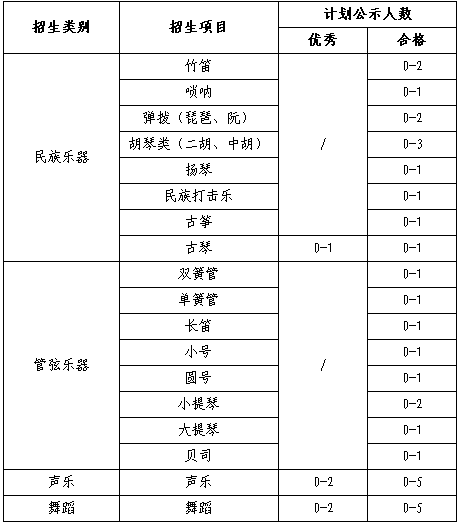 注:1、聲樂(lè)不招收通俗唱法;舞蹈不招收街舞和國(guó)標(biāo)舞。