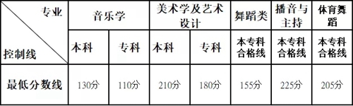 2019年云南省普通高校招生藝術類統考本、專科專業最低控制分數線